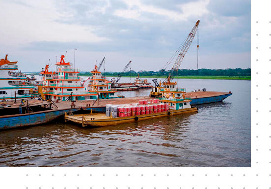 Realizamos servicio de transporte multimodal (terrestre-fluvial) en el oriente peruano como es Iquitos, Pucallpa, Tarapoto.